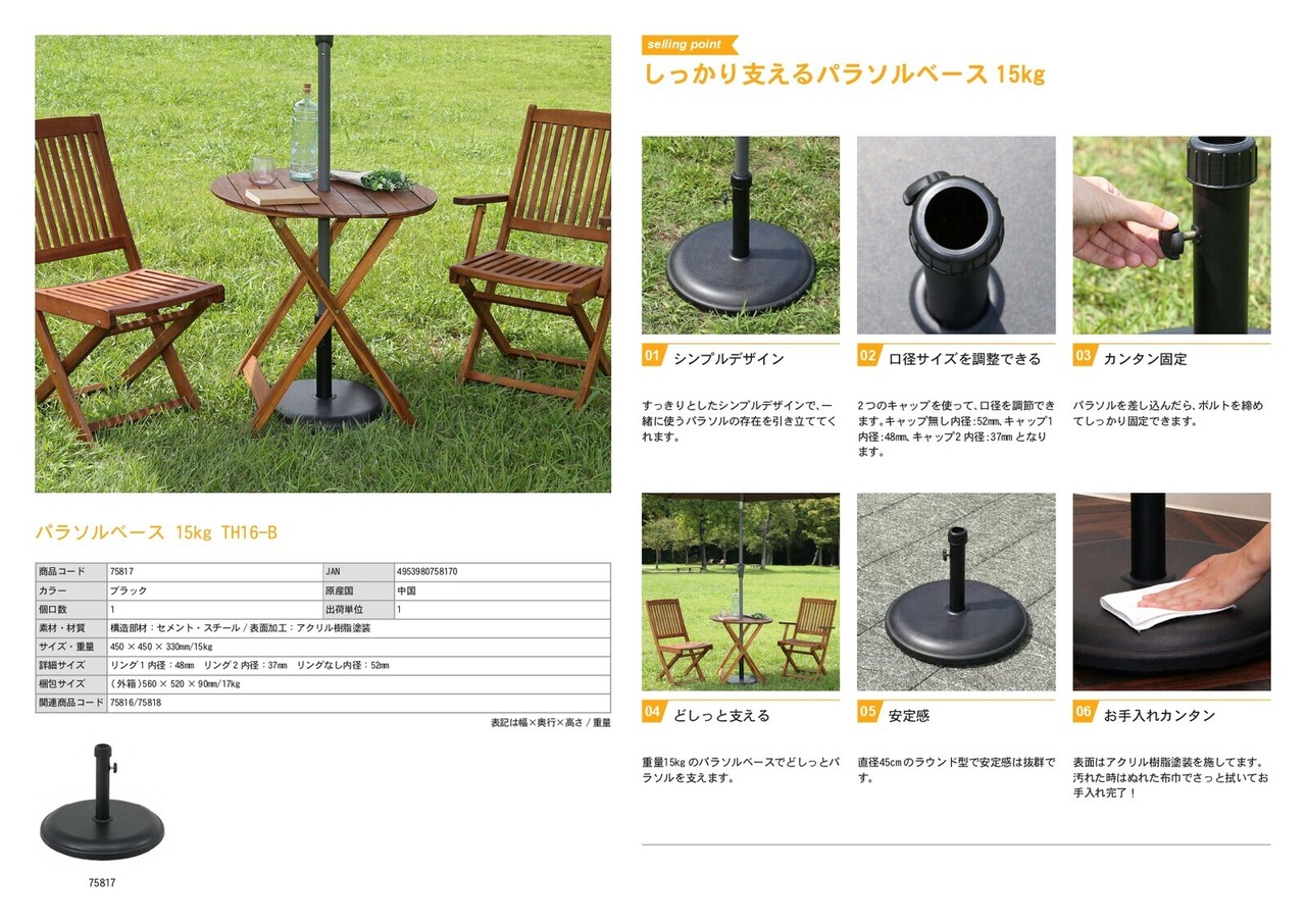 パラソルの大きさや使用する場所に合わせて重量を選べます。