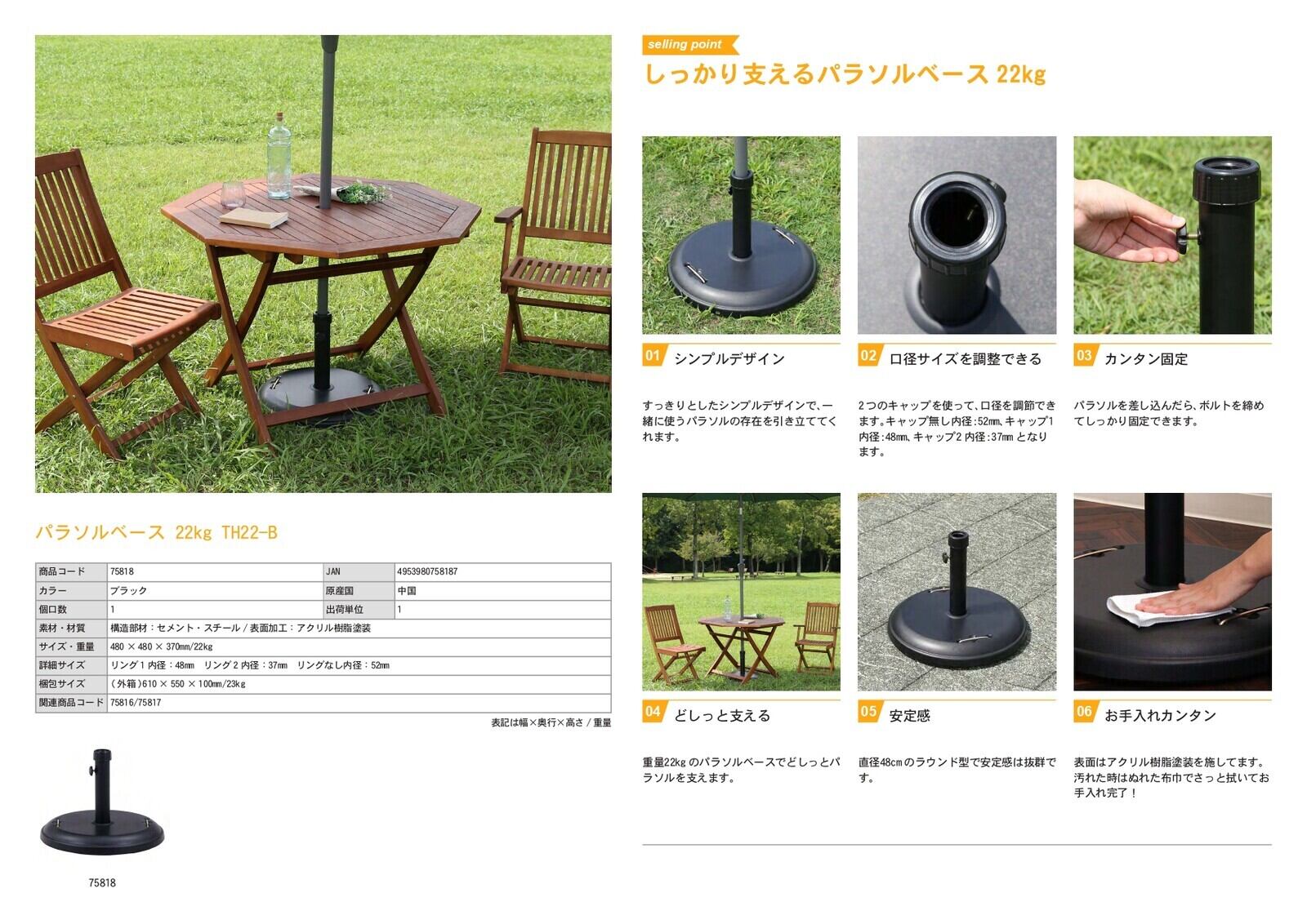 どっしりとした安定感のあるパラソルベースです。