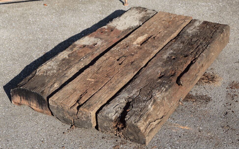 雰囲気のある実際に鉄道で使用されていたアンティークな天然木の枕木。