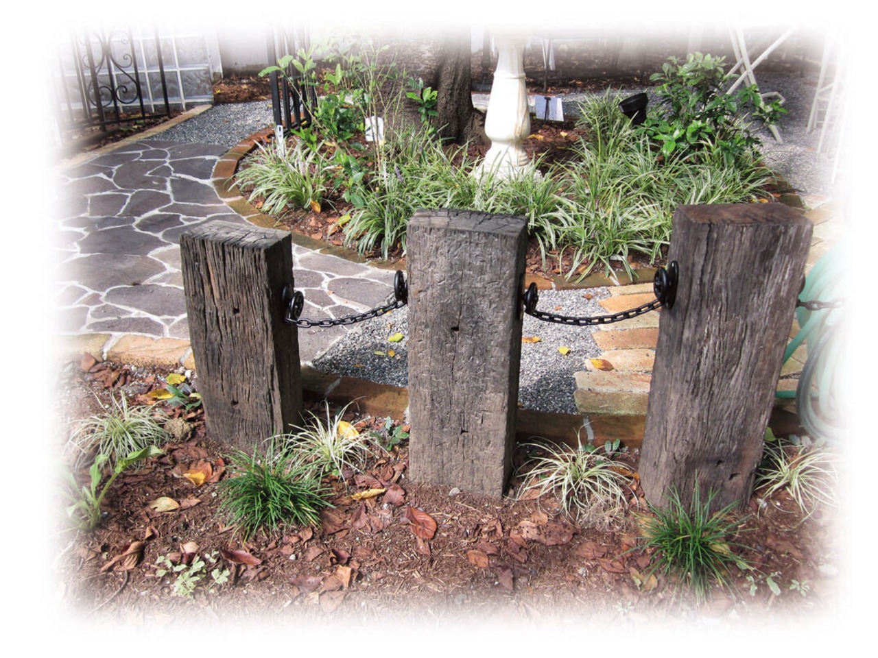 ユーカリ系の材木で、非常に硬く、重たいのですが材木自身に油が含まれており防腐剤は一切注入しておりません。