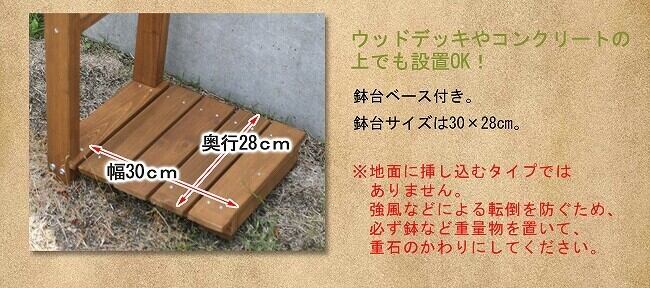 鉢台ベース付き。鉢台を重石にしてアーチを安定させてください。