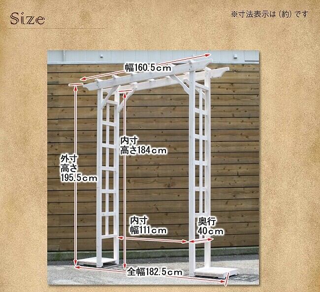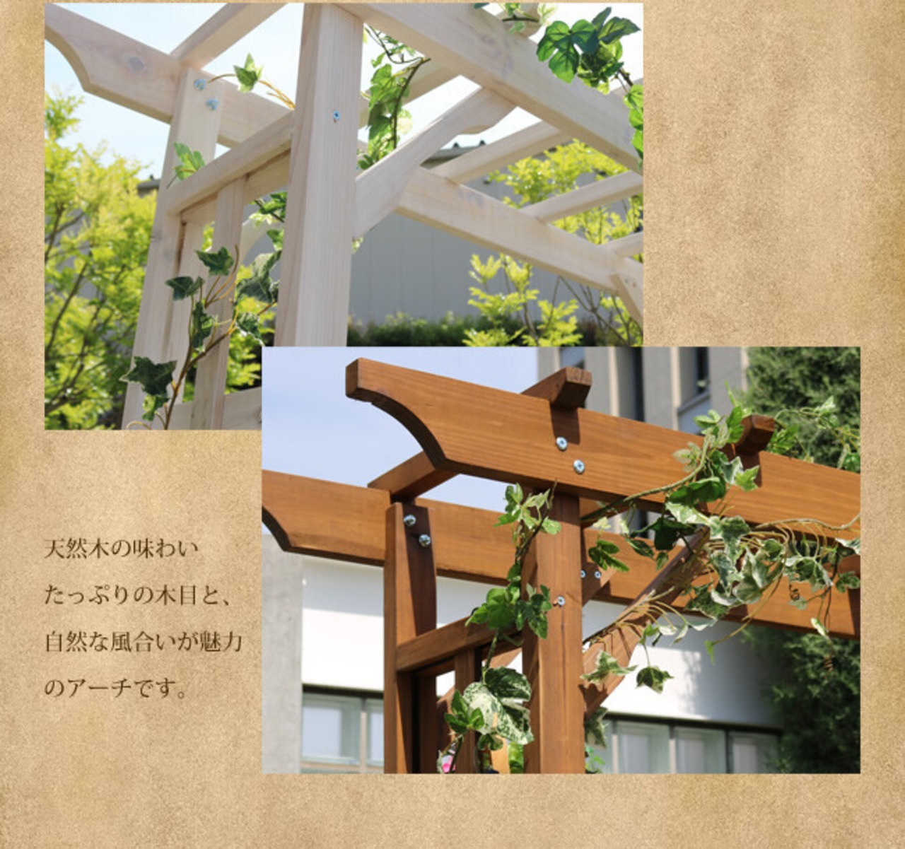 天然木の味わいたっぷりの木目と、自然な風合いが魅力のアーチです。